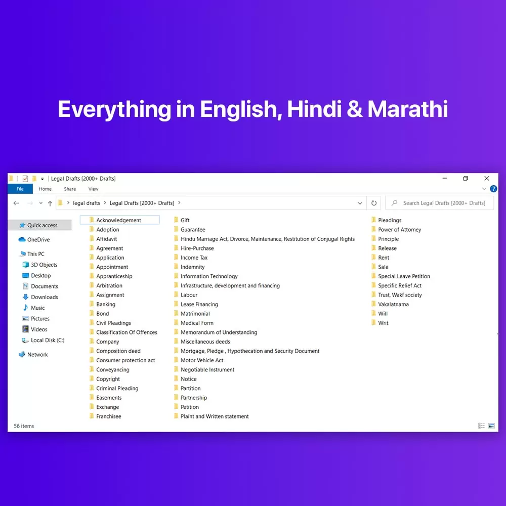 This is a Ready-Made Collection Package of 2000+ Legal Drafts, Legal Notices, Pleadings, etc Available In Hindi, English And Marathi.