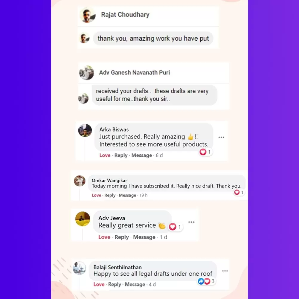 All the Drafts are 100% ACCURATE and EDITABLE as per your requirement.