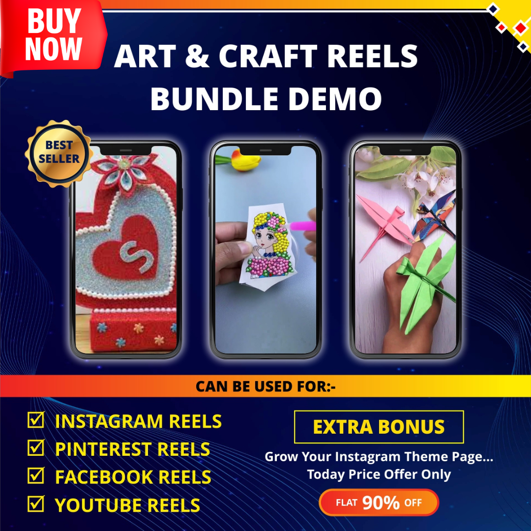 GET 9000+ ART AND CRAFT REELS BUNDLE FOR CONTENT CREATORS, STUDENTS, INFLUENCERS, BUSINESS OWNERS. DOWNLOAD PUT YOUR LOGO AND PUBLISH.